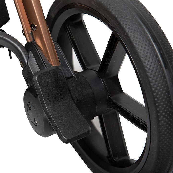 Do tego wózek ma inteligentny hamulec, dzięki któremu łatwo zablokujesz kółka i nie zniszczysz przy tym swoich ulubionych butów.