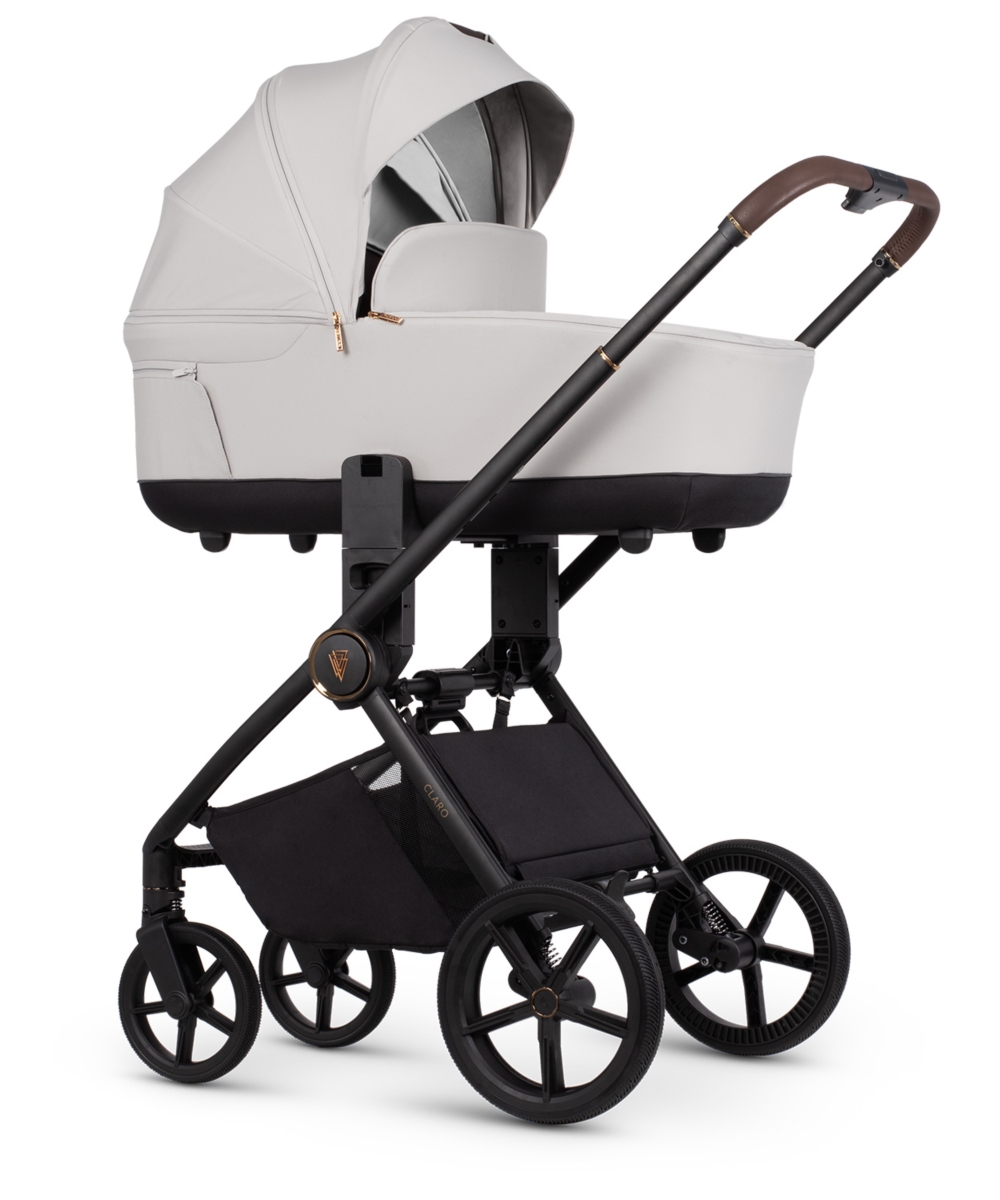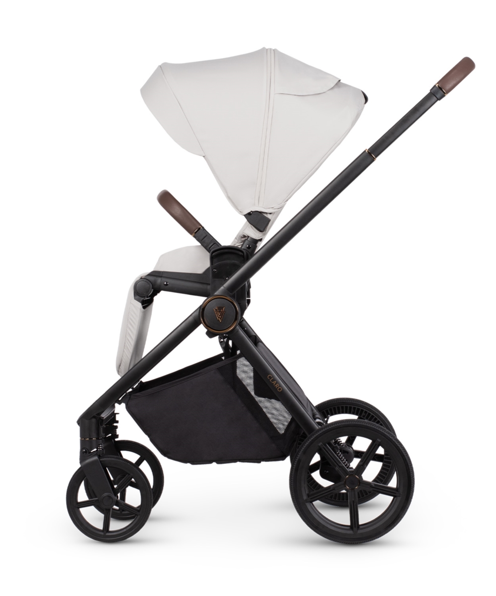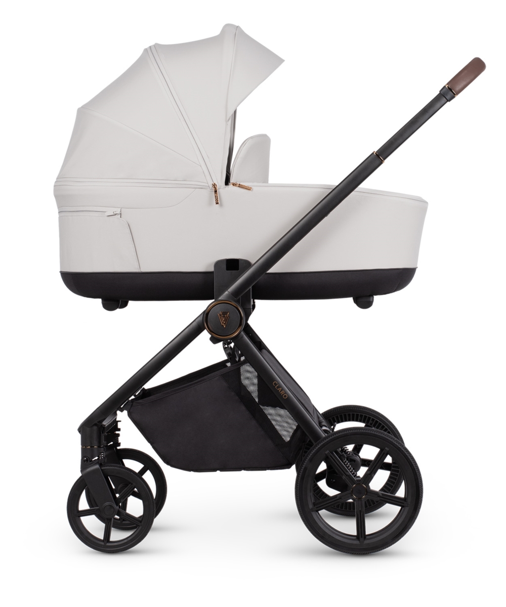 Claro posiada niewielkie, zwinne żelowe koła, które gwarantują dużą wytrzymałość i dobrą amortyzację. Dbałość o każdy detal, piękne zdobienia, a także delikatny wzór wytłoczony wewnątrz gondoli sprawiają, że tym wózkiem wyjedziesz na miasto z dumą. Claro to jednak nie tylko estetyczny design, ale przede wszystkim konstrukcja, która zapewnia Tobie i maluszkowi bezpieczeństwo podczas każdego spaceru. Zadbaliśmy o wszystko, włącznie z odblaskami w spacerówce i gondoli, by zagwarantować Wam spokojne wyjścia i przyjemne wspomnienia.