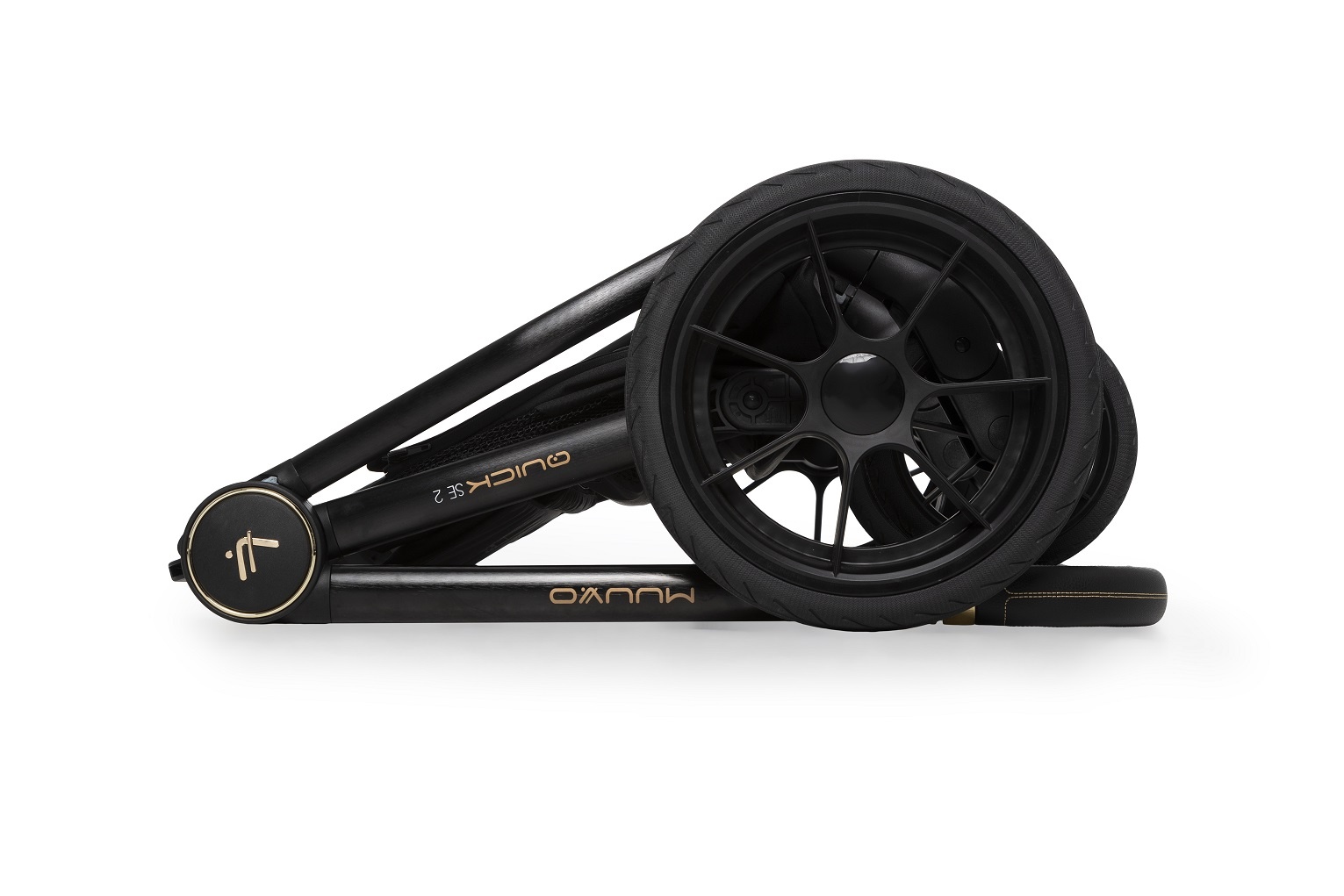 Podczas projektowania wózków Muuvo nie zapominamy o komforcie rodziców – oprócz wygodnego systemu składania, regulowanej rączki i obszernego, zapinanego kosza na zakupy, Quick SE2 wyposażony został w zupełnie nową, pojemną torbę, którą podczas spacerów można zawiesić na teleskopowej rączce przy użyciu dodatkowych, regulowanych pasków. Nieodłącznym elementem wózków Muuvo są także duże, żelowe, bezobsługowe i bezawaryjne koła z odpowiednio dobraną amortyzacją, zapewniającą znakomite warunki jezdne.