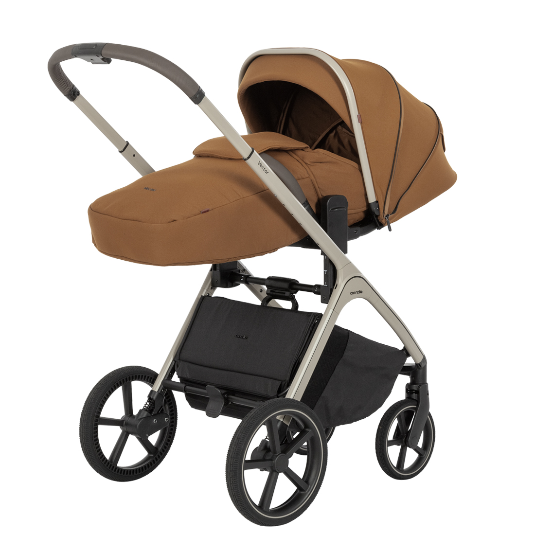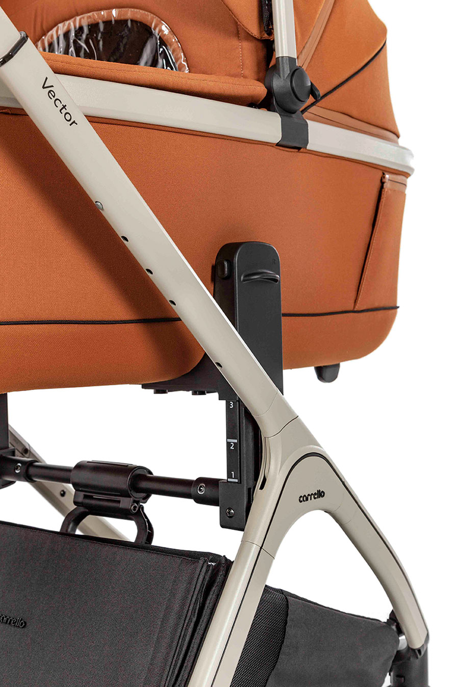 Gondola jest wykonana z połączonych materiałów. Solidna podstawa i korpus z wielowarstwowego tekstyliów tworzą komfortowy mikroklimat wewnątrz gondoli. Taka konstrukcja pozwala na zmniejszenie wagi produktu i składanie gondoli.