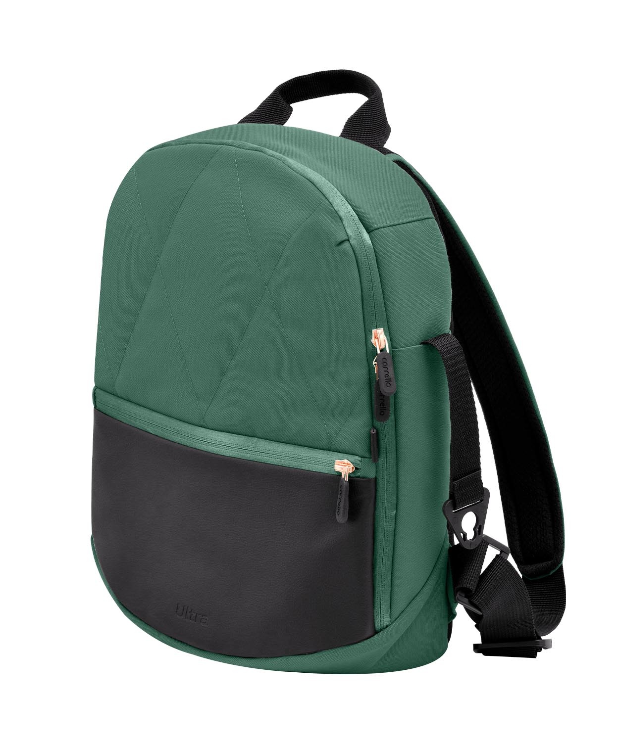 Do wózka dołączone jest stylowe nosidełko dla dziecka z przegródkami na butelki. Plecak można przymocować do stelaża.