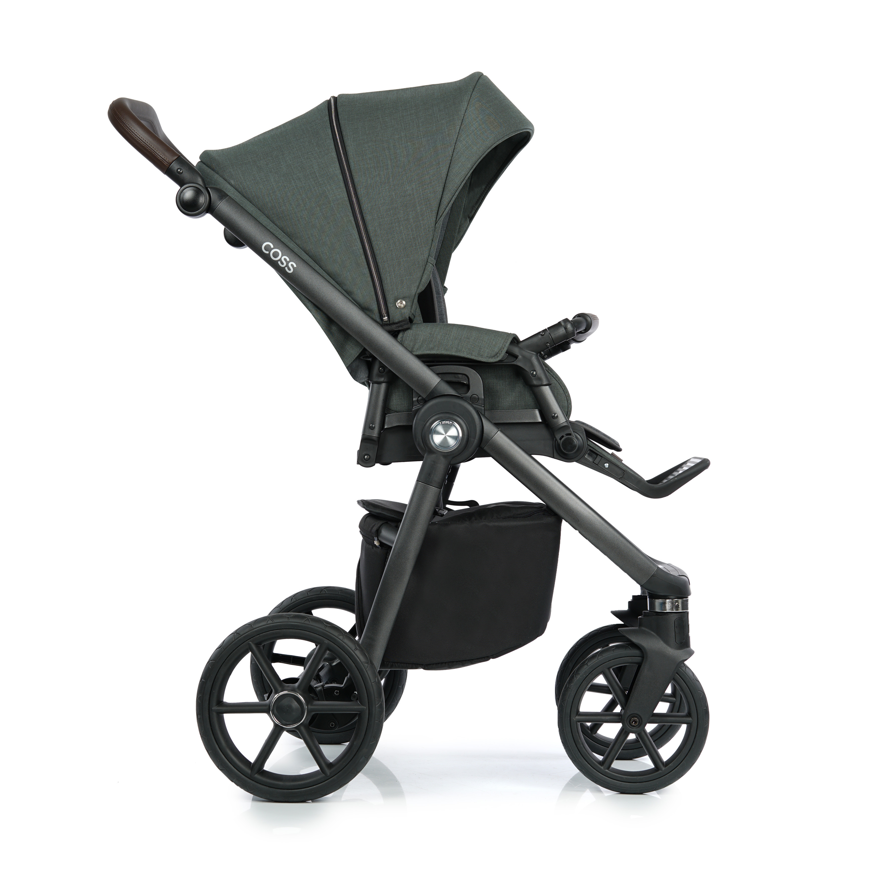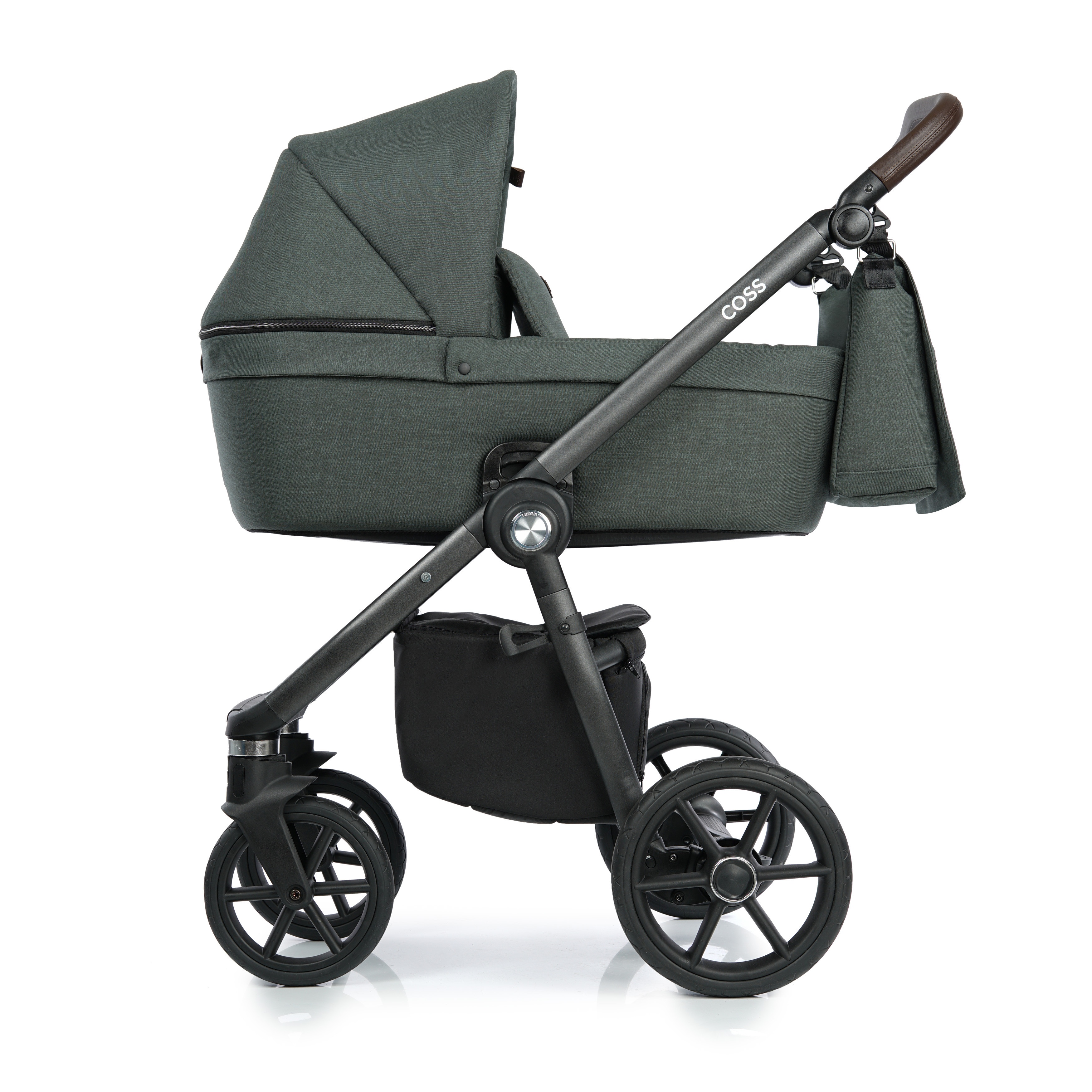 Lekki aluminiowy stelaż o nowoczesny designie. Innowacyjny system składania EASY FOLD umożliwiający złożenie wózka jedną ręką. Miękkie zawieszenie, obrotowe przednie koła, łatwy system blokowania kół, bezobsługowe, bezdętkowe koła zapewniające płynne prowadzenie. System Anti Shock. Centralny hamulec, duży zamykany kosz na zakupy. Regulowana rączka obszyta eko-skórą. Łatwy i wygodny system „Click” przy montażu gondoli, spacerówki, fotelika. Duża, wygodna gondola z regulacją oparcia, wnętrze wykonane z naturalnej tkaniny spełniającej najwyższe standardy bezpieczeństwa. Kieszonki na drobiazgi wewnątrz gondoli. Budka z okienkiem wentylacyjnym. Możliwość montażu spacerówki przodem lub tyłem do kierunku jazdy, przedłużana budka w wersji spacerowej chroniąca przed wiatrem, zimnem i promieniami słonecznymi, okienko wentylacyjne w budce spacerowej (odsuwana tylna część budki). Miękki i komfortowy materacyk w siedzonku. Pięciopunktowe pasy bezpieczeństwa z regulacją wysokości, regulowane oparcie do pozycji leżącej, regulowany podnóżek, odpinana barierka, obszyta eko-skórą. Lekka, wygodna torba. Wysokiej jakości atestowane tkaniny. .jpg)