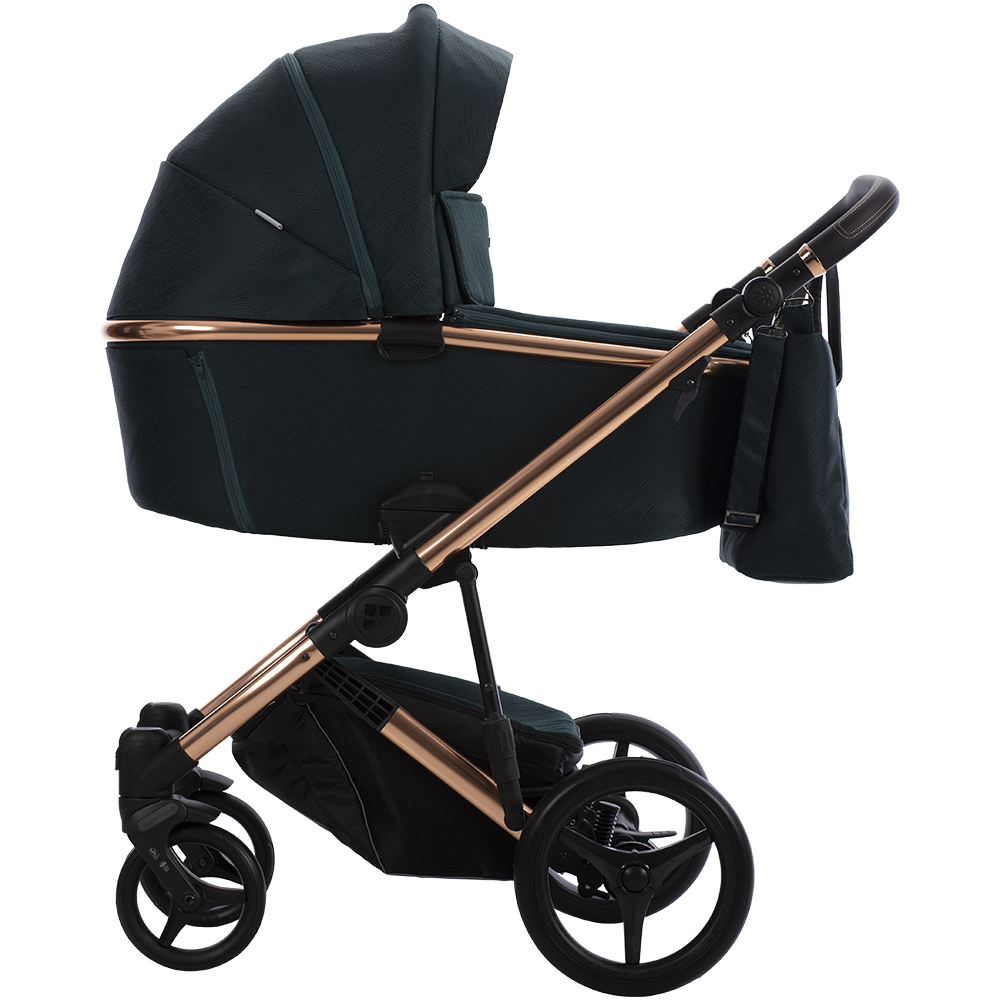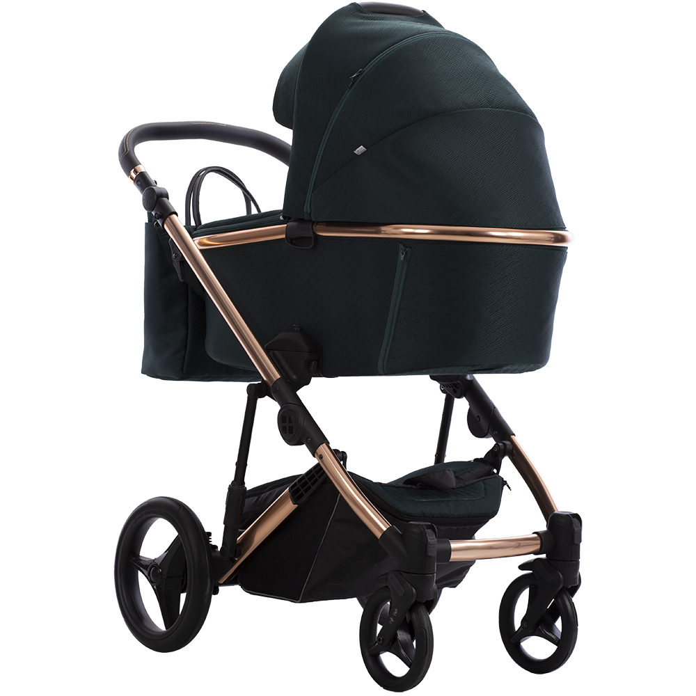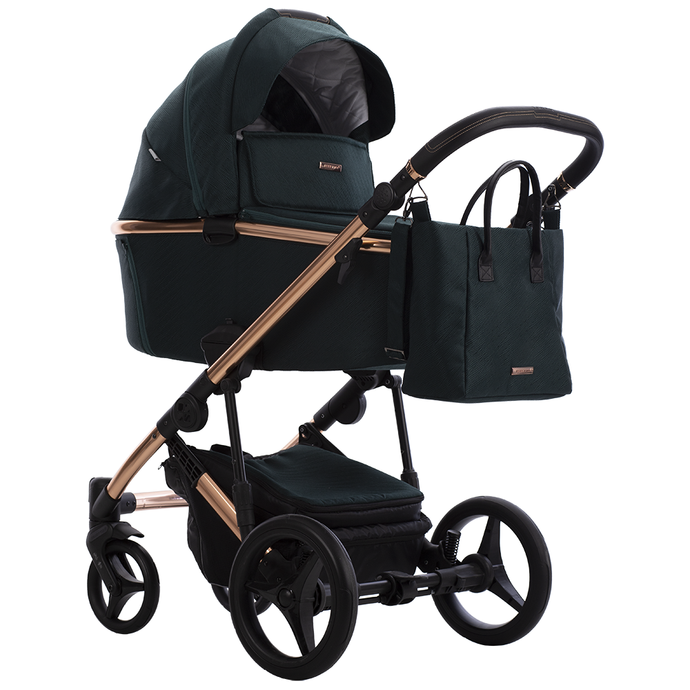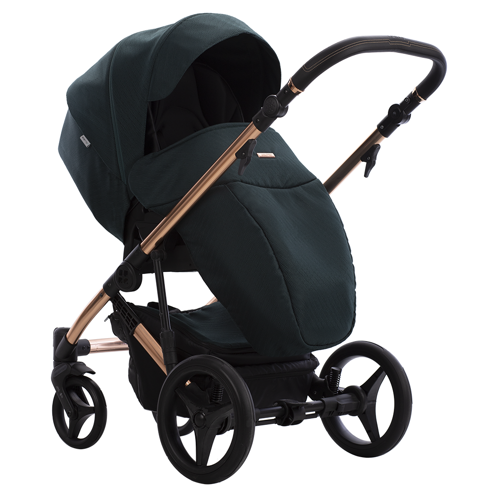 Ogromną zaletą wózka Loren Premium Class jest jego stelaż. Nie tylko wspaniale się prezentuje i mieni unikatową barwą, ale jest przy tym bardzo lekki i składa się do kompaktowych rozmiarów. Za doskonałe właściwości jezdne odpowiadają zarówno systemy SAS (amortyzacja) i DMS (ochrona przed blokowaniem się kół na nierównościach), jak i boczne dwustopniowe amortyzatory Soft/Hard, które można ułożyć w trybie miękkim lub twardym. Niepompowane koła zapewniają doskonałą sprężystość, a jednocześnie nie wymagają dbania o ciśnienie w oponach. Wszystko to sprawia, że dzięki zaawansowanemu stelażowi, wózek jest zwrotny, komfortowy i praktyczny – i doskonale sprawdzi się w każdym terenie.