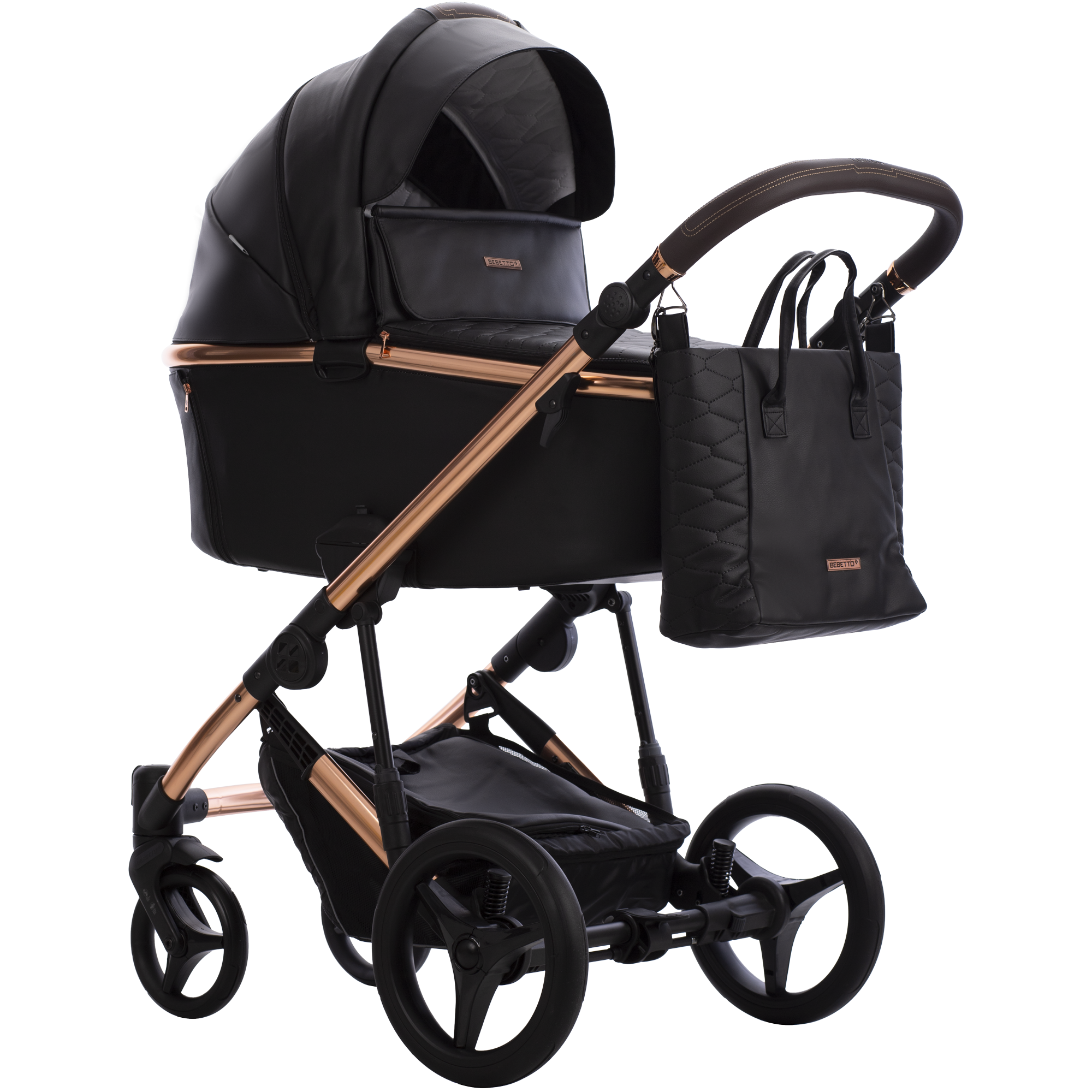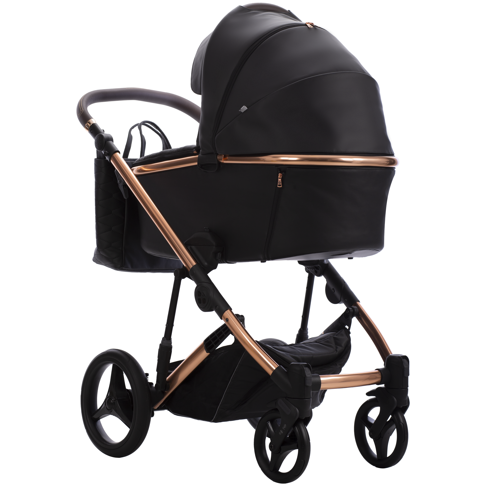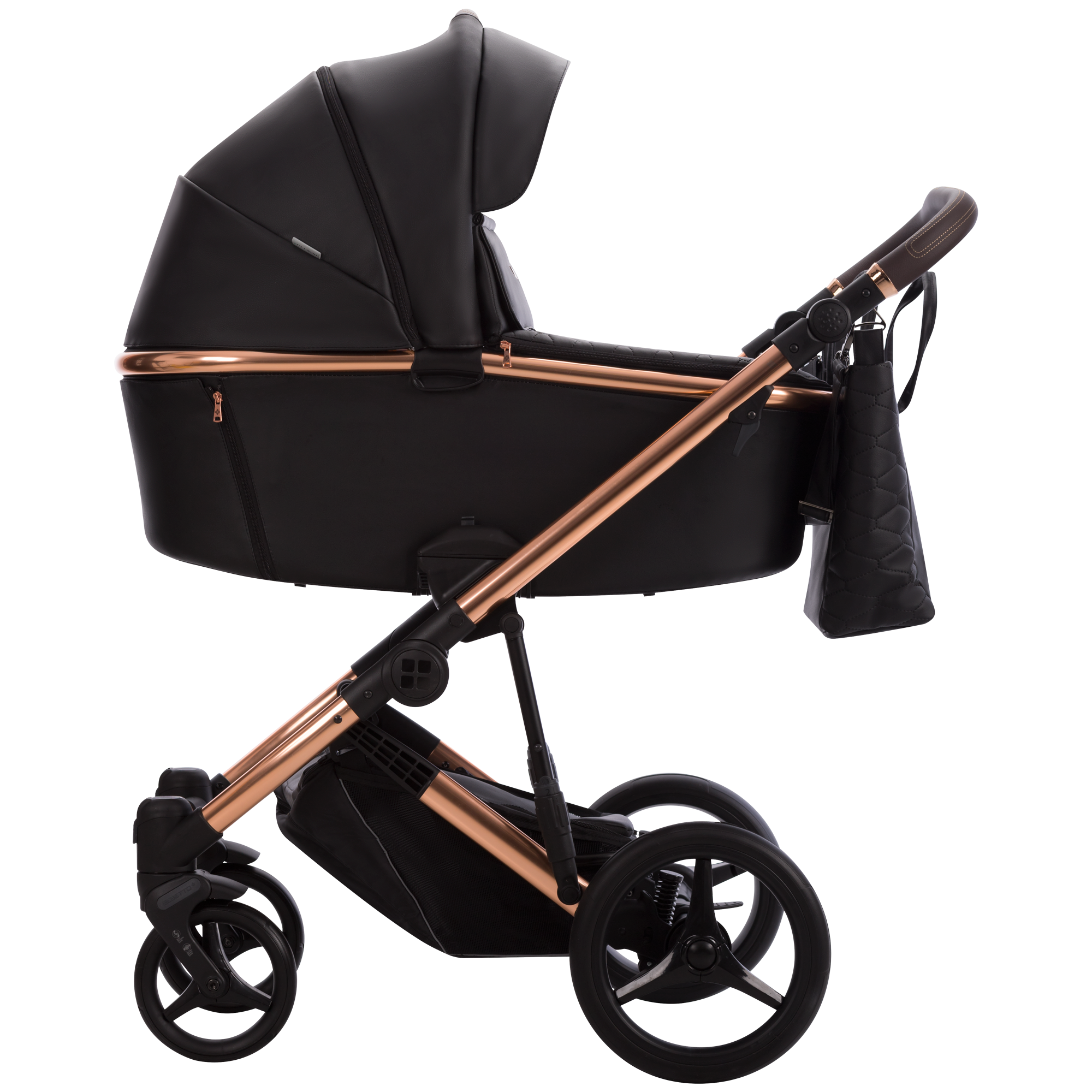 Ogromną zaletą wózka Loren Premium Class jest jego stelaż. Nie tylko wspaniale się prezentuje i mieni unikatową barwą, ale jest przy tym bardzo lekki i składa się do kompaktowych rozmiarów. Za doskonałe właściwości jezdne odpowiadają zarówno systemy SAS (amortyzacja) i DMS (ochrona przed blokowaniem się kół na nierównościach), jak i boczne dwustopniowe amortyzatory Soft/Hard, które można ułożyć w trybie miękkim lub twardym. Niepompowane koła zapewniają doskonałą sprężystość, a jednocześnie nie wymagają dbania o ciśnienie w oponach. Wszystko to sprawia, że dzięki zaawansowanemu stelażowi, wózek jest zwrotny, komfortowy i praktyczny – i doskonale sprawdzi się w każdym terenie.