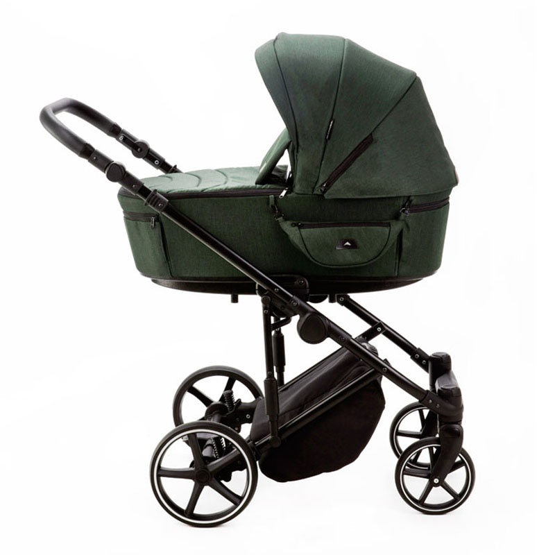 Hydrofobowe tkaniny zewnętrzne, Kompaktowa gondola składana "Na płasko", Materac z ryflowanej pianki, Okienko w wiatrołapie umożliwiające kontakt z dzieckiem, Pokrowiec zapinany na zamek, Poszewka na materac – możliwość prania ręcznego w 30st., Regulowana wentylacja w dnie gondoli, Składany daszek przeciwsłoneczny w budce, Wentylacja dodatkowa w gondoli, Wentylacja w budce, Wypinanie gondoli przyciskami "Memory"