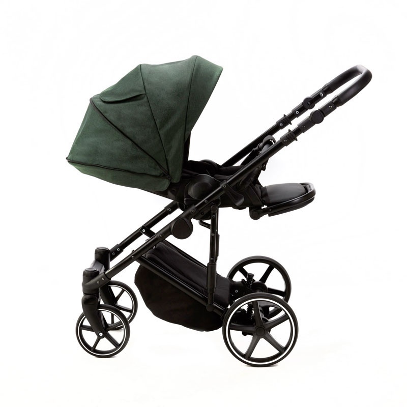 4-stopniowa regulacja oparcia, Barierka odpinana i uchylna, Barierka z ekoskóry, Hydrofobowe tkaniny zewnętrzne, Kilkustopniowa regulacja oparcia, Możliwość montażu przodem i tyłem w kierunku jazdy, Okienko wentylacyjne w budce, Pas krokowy, Pięciopunktowe pasy bezpieczeństwa, Pokrowiec na nóżki, Przedłużana budka, Regulowany podnóżek, Składany daszek przeciwsłoneczny w budce, Szelki rosnące z dzieckiem, Wypinanie spacerówki przyciskami "Memory"