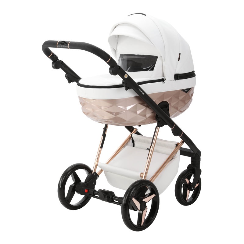 QUANTUM Star Collection to ekskluzywna wersja wózka QUANTUM. Wersję Star Collection wyróżnia tłoczona misa gondoli pokryta wykończeniem metalizowanym. Metalizowane wykończenia są obecne także na stelażu i felgach.