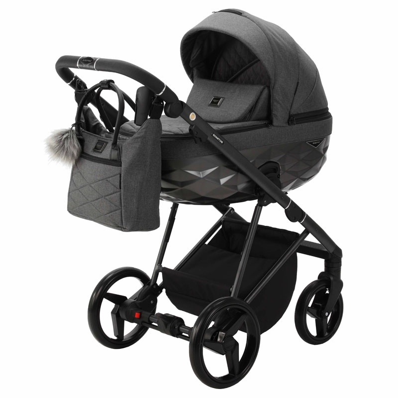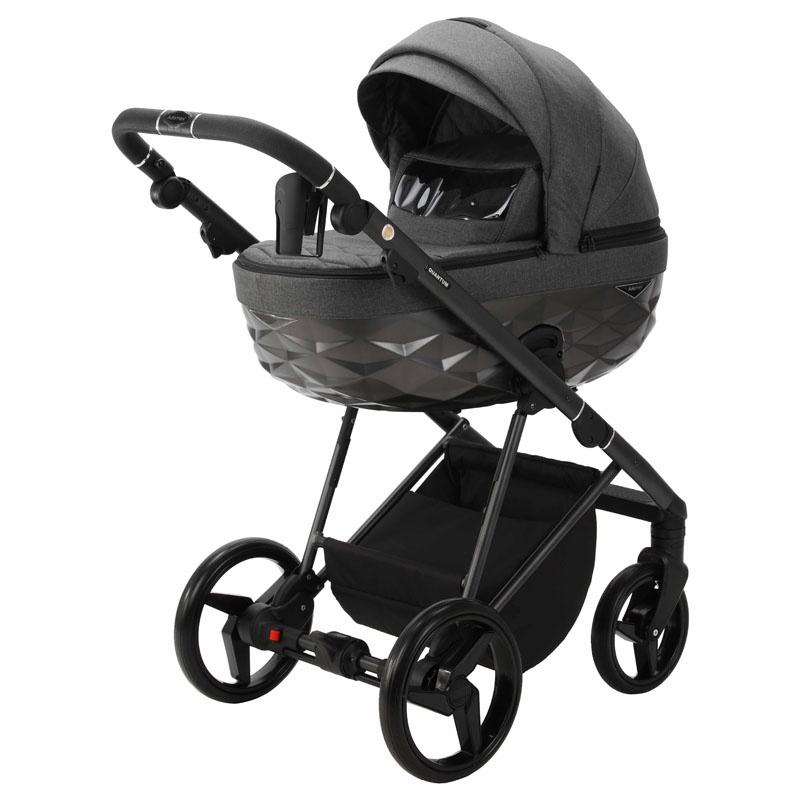 Wielofunkcyjny wózek dziecięcy QUANTUM Star Collection posiada dużą, stylową gondolę ozdobioną trójwymiarowym wzorem, składaną budkę z chowanym daszkiem przeciwsłonecznym i zamykanym panelem wentylacyjnym oraz torbę z dodatkowymi akcesoriami i miękką wyściółkę z pikowanej bawełny. W dnie gondoli znajduje się regulowany otwór wentylacyjny, a odpinany na zamek pokrowiec posiada składany wiatrołap i okienko, umożliwiające utrzymanie kontaktu wzrokowego z dzieckiem.