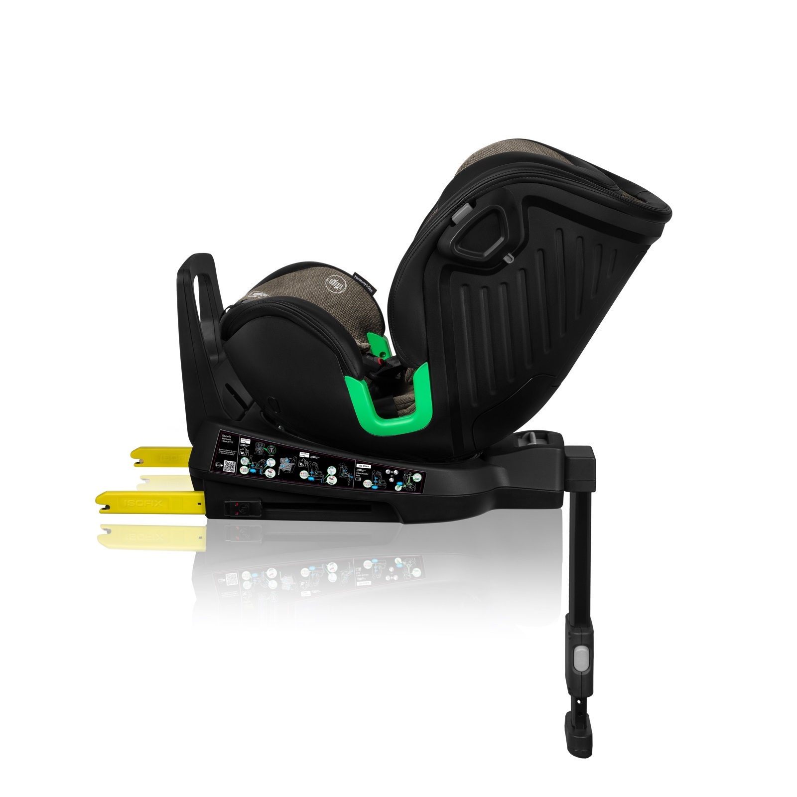 Rama antyrotaycjna nie tylko wpływa na płynne działanie bazy obrotowej, ale również zapewnia dziecku dodatkowe miejsce na nogi. Dzięki możliwości regulacji ramy fotelik znacznie lepiej przylega do kanapy samochodu.