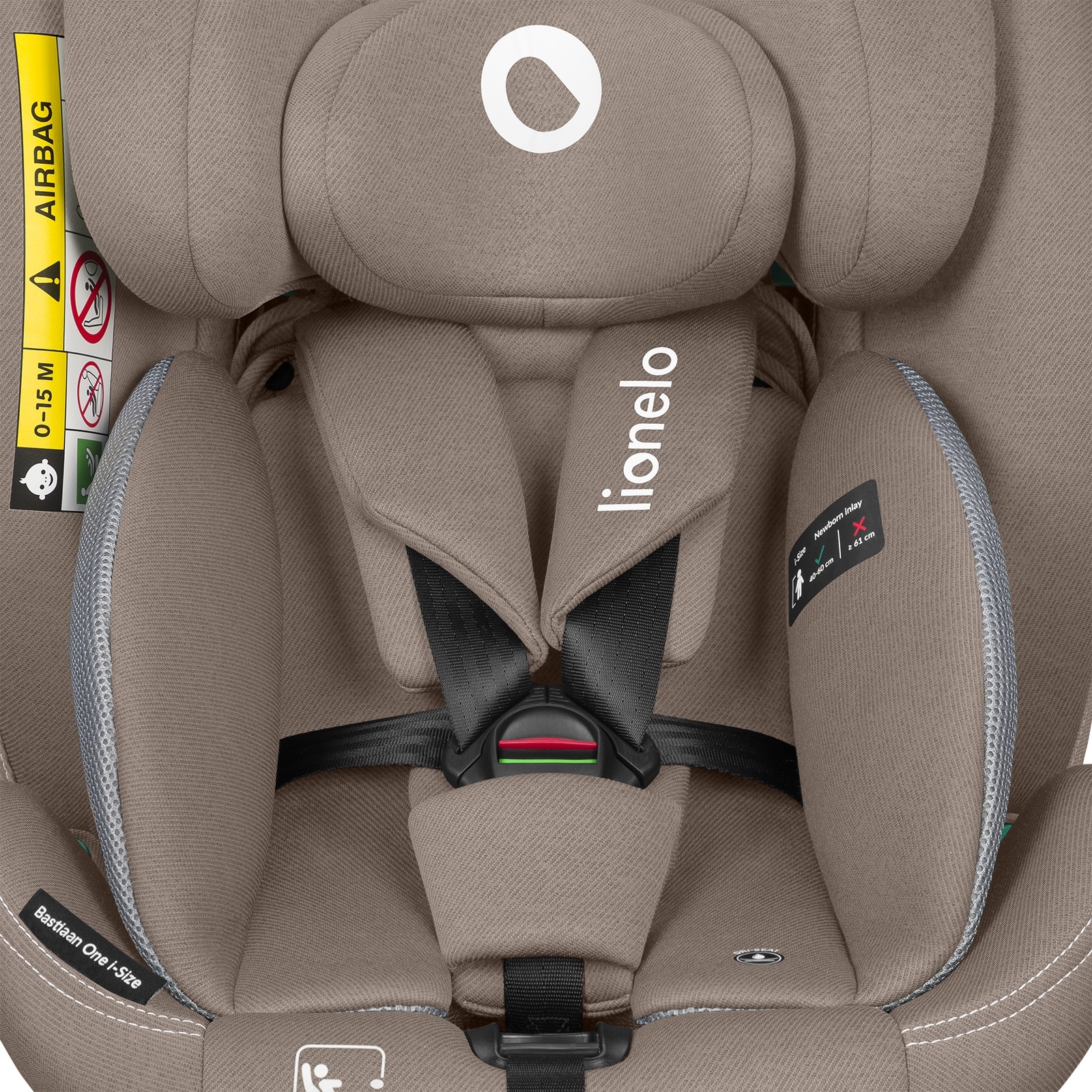 Lionelo Bastiaan One i-Size to fotelik zgodny z najnowszą, rygorystyczną homologacją R129. Jest to model 4w1, dedykowany dzieciom w przedziale wzrostowym 40-150 cm. Fotelik przeznaczony jest do montażu zarówno przodem, jak i tyłem do kierunku jazdy za pomocą systemu ISOFIX oraz pasa TopTether. Bastiaan One i-Size został wyposażony w bazę obrotową 360° EasyTurn, która ułatwia codzienne korzystanie z fotelika. O bezpieczeństwo dziecka dba regulowany zagłówek z pianką Memory Foam, która skutecznie pochłania wszelkie przeciążenia. Fotelik rośnie razem z dzieckiem, dostosowując się do jego zmieniających się potrzeb. 4-stopniowa regulacja pochylenia oparcia – zarówno w ustawieniu przodem, jak i tyłem do kierunku jazdy – zapewnia dziecku wygodę nawet podczas najdłuższych podróż