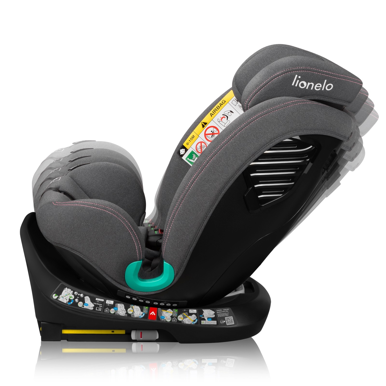 Lionelo Bastiaan One i-Size to fotelik zgodny z najnowszą, rygorystyczną homologacją R129. Jest to model 4w1, dedykowany dzieciom w przedziale wzrostowym 40-150 cm. Fotelik przeznaczony jest do montażu zarówno przodem, jak i tyłem do kierunku jazdy za pomocą systemu ISOFIX oraz pasa TopTether. Bastiaan One i-Size został wyposażony w bazę obrotową 360° EasyTurn, która ułatwia codzienne korzystanie z fotelika. O bezpieczeństwo dziecka dba regulowany zagłówek z pianką Memory Foam, która skutecznie pochłania wszelkie przeciążenia. Fotelik rośnie razem z dzieckiem, dostosowując się do jego zmieniających się potrzeb. 4-stopniowa regulacja pochylenia oparcia – zarówno w ustawieniu przodem, jak i tyłem do kierunku jazdy – zapewnia dziecku wygodę nawet podczas najdłuższych podróż