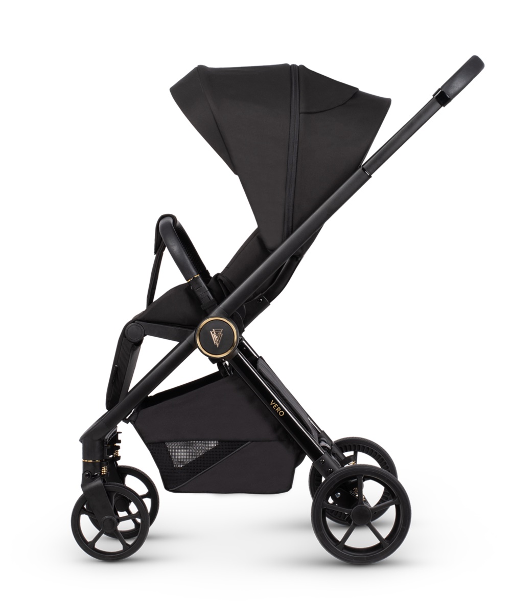 Venicci Vero to spacerówka na każdy teren. Dużą uwagę skupiliśmy na amortyzacji, która jest naprawdę dopracowana – przy każdym z czterech kół umieszczony jest dedykowany amortyzator. Doskonałe wrażenia z jazdy maluszkowi zapewnią również koła, które są gumowe, bezdętkowe, a co za tym idzie – bardziej miękkie. Ich rozmiar jest też nieco większy niż w klasycznych spacerówkach.