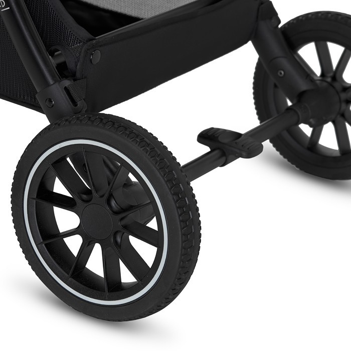espiro fuel, mimo niewielkiego rozmiaru, ma duże i niewymagające pompowania koła. Sprawdzą się one zarówno w mieście, jak i na piaszczystych oraz żwirowych ścieżkach. Pełna amortyzacja kół odpowiada za płynność prowadzenia wózka i komfort jadącego w nim malucha – także podczas przejażdżki po nieutwardzonej drodze.