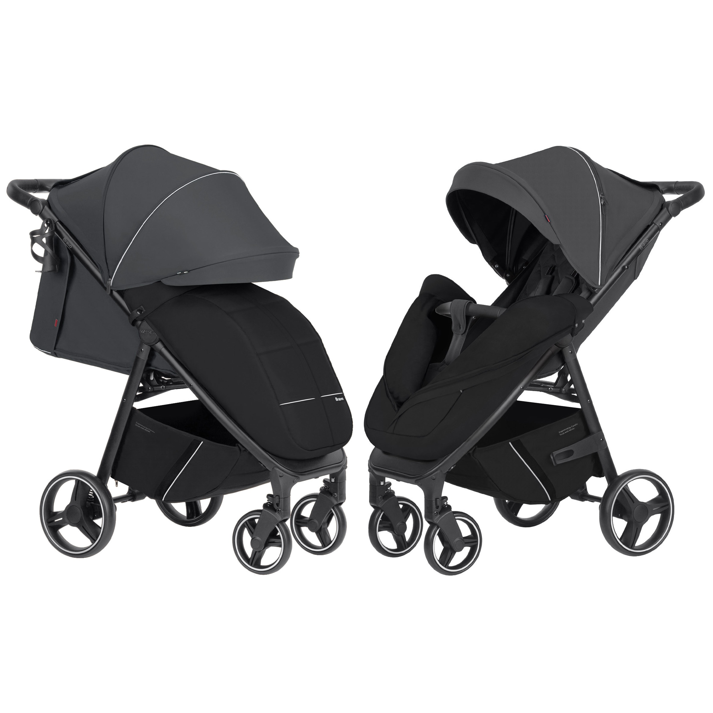 Wózek szybko składa się z tekstyliami do wewnątrz i pozostaje w pozycji pionowej bez podparcia. Wygodny uchwyt do przenoszenia. Mechaniczna regulacja oparcia w trzech pozycjach, w tym "leżącej" za pomocą mechanizmu przyciskowego do podnoszenia oparcia.