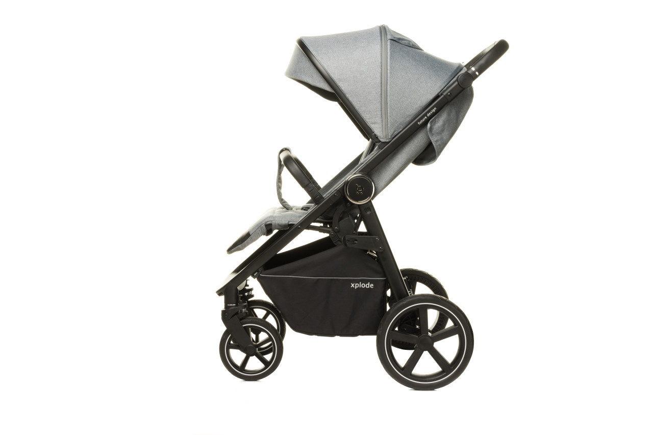 Wózek Xplode to propozycja dla rodziców ceniących sobie nowatorskie rozwiązania gwarantujące dziecku komfort i bezpieczeństwo podczas spacerów w trudnym terenie. Bezobsługowe pneumatyczne koła, regulowana twardość zawieszenia, tkanina z powłoką hydrofobową odporną na promieniowanie UV 50 stawiają Xplode na pozycji lidera w swojej klasie, a bez wątpienia jest to klasa premium.