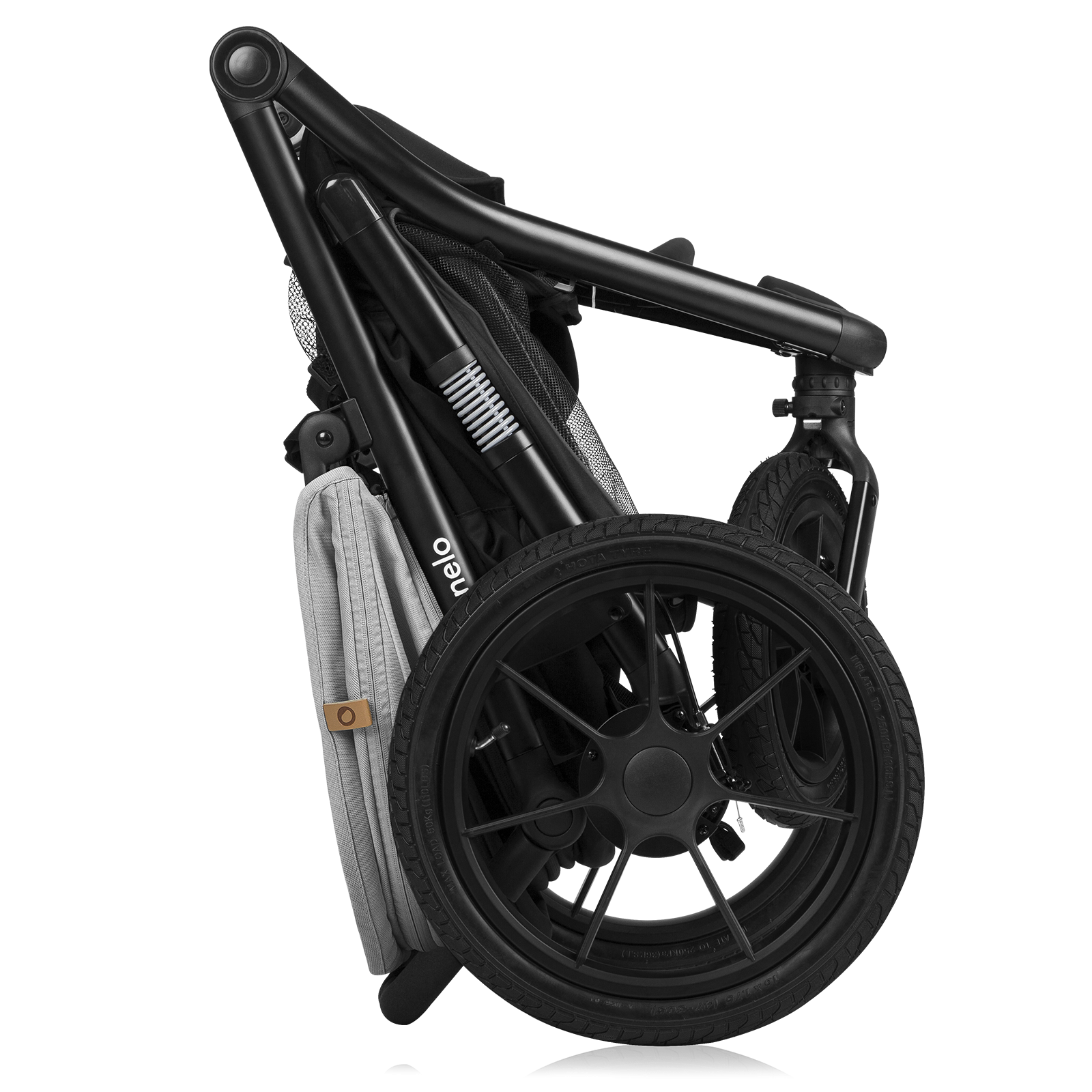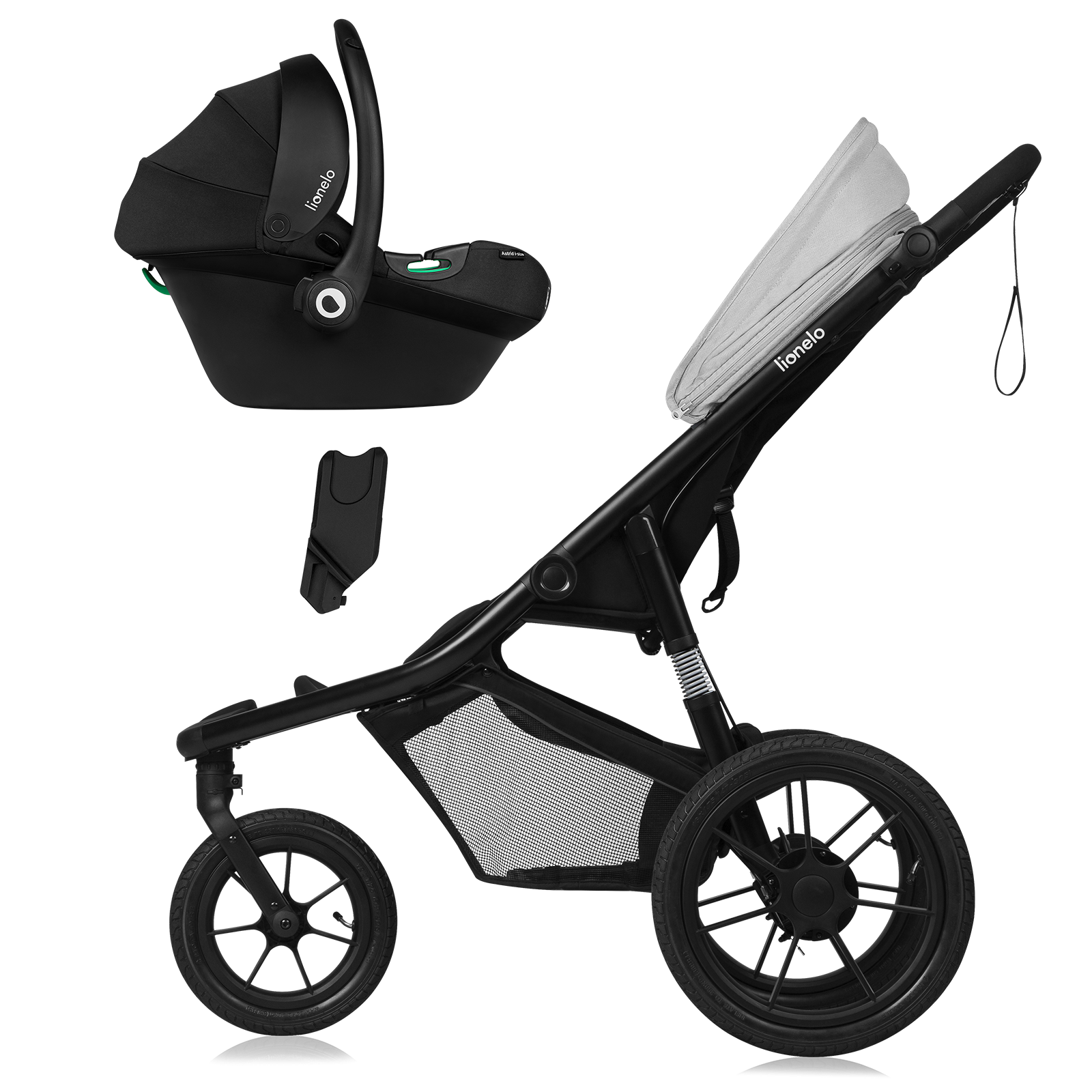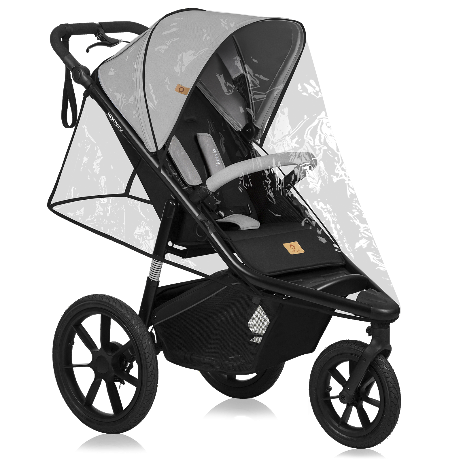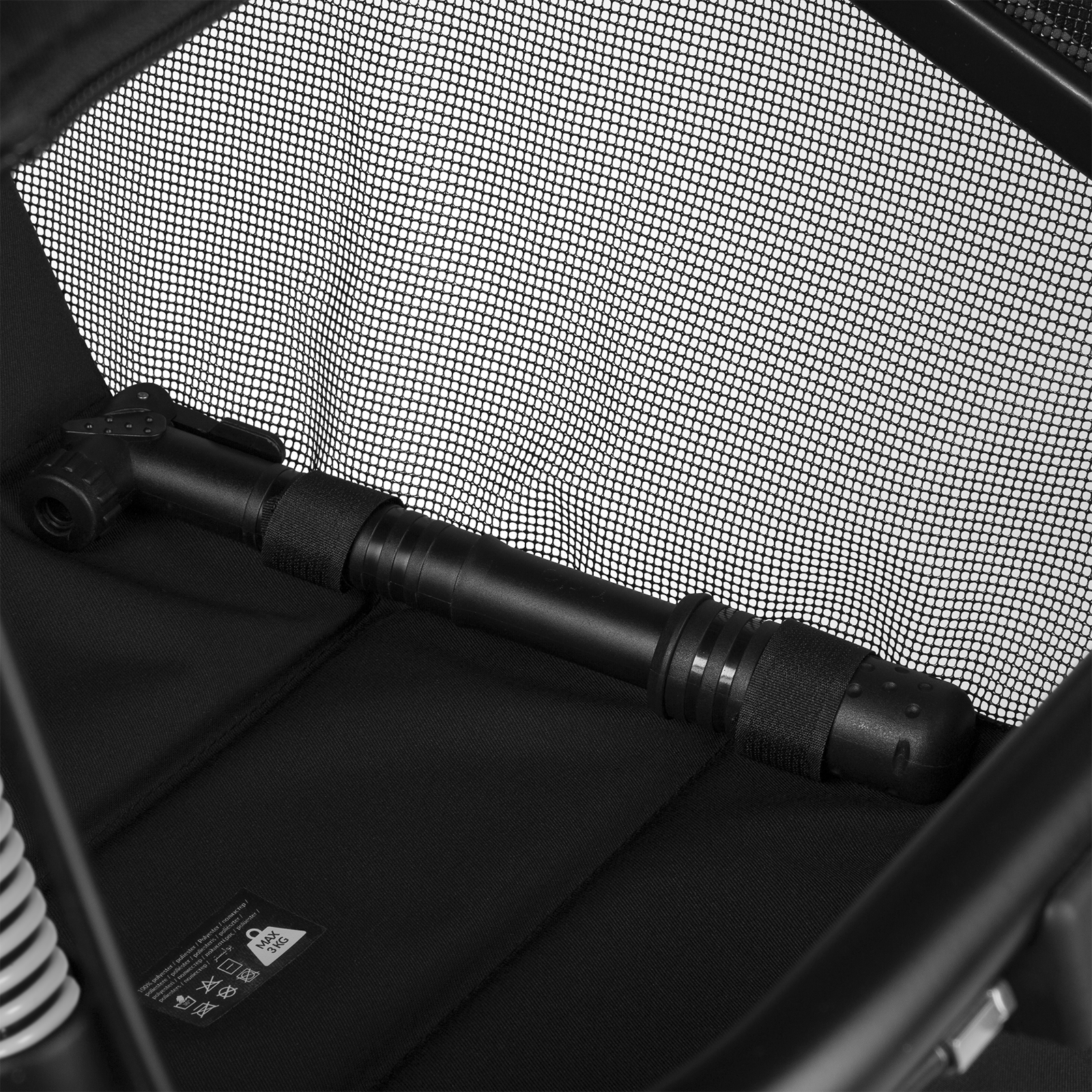 PW skład zestawu wchodzi pompka umożliwiająca swobodne napompowanie kół oraz specjalna folia przeciwdeszczowa, chroniąca dziecko podczas niepogody. W osobnej sprzedaży dostępne są również adaptery do fotelika samochodowego, które pozwalają na przewożenia nosidła na stelażu wózka.