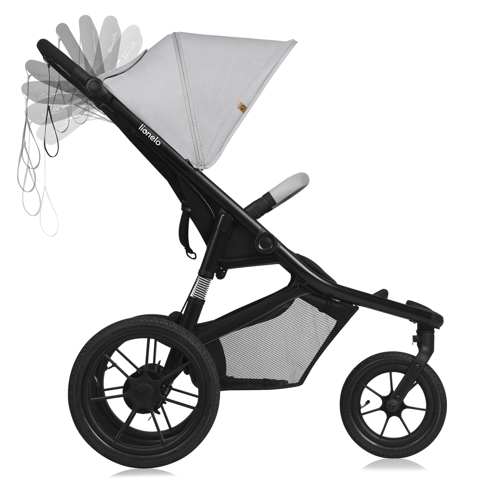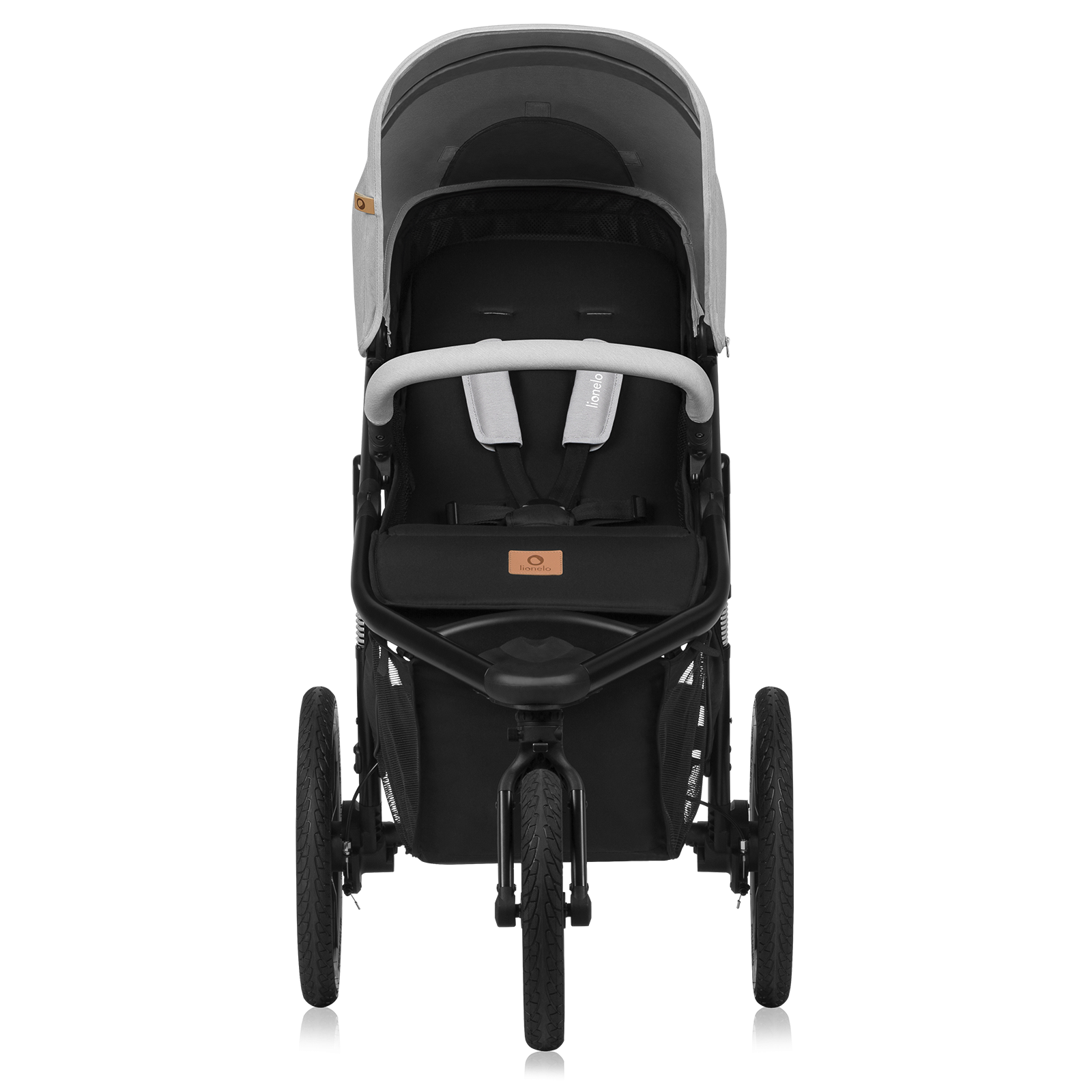 Lionelo Azura to uniwersalny wózek, który doskonale sprawdzi się zarówno podczas codziennych spacerów, jak i uprawiania sportów. Trzy obszerne, pompowane koła poradzą sobie nawet na bardziej wymagającym terenie, a komfortowa amortyzacja zapewni wygodę nie tylko rodzicowi, ale również dziecku. Możliwość obrotu kół o 360° oraz funkcja blokady do jazdy na wprost gwarantuje duży komfort podczas użytkowania. Wózek przeznaczony jest dla dzieci od 6 miesiąca życia aż do osiągnięcia wagi 22 kg. Obecność zarówno ręcznego hamulca linkowego, jak i centralnego hamulca nożnego pozwala na dostosowanie sposobu prowadzenia do stylu życia.