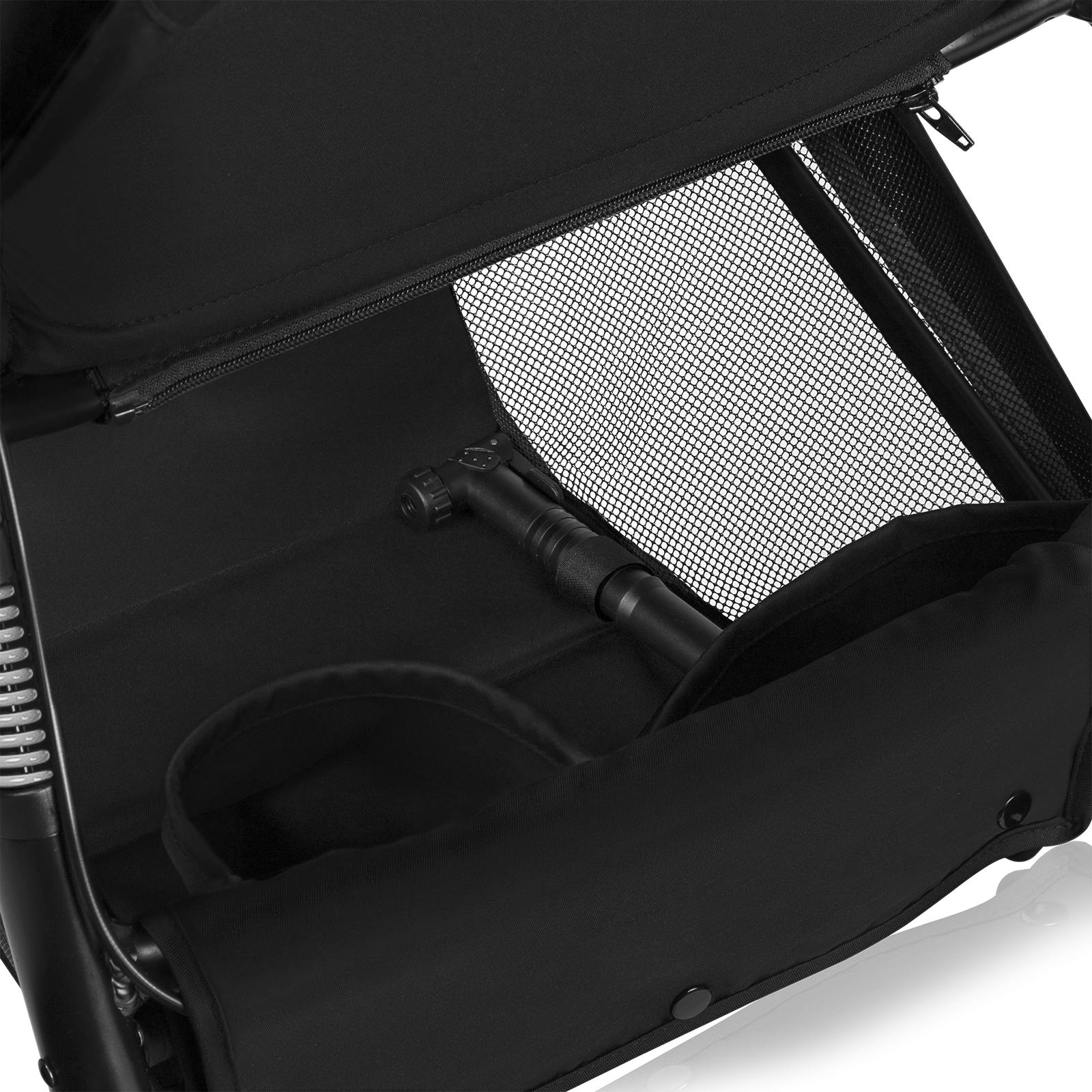 Szerokie i wysokie siedzisko zapewnia dziecku wygodę nawet podczas najdłuższych spacerów. Bezstopniowa regulacja pochylenia oparcia z możliwością rozłożenia do pozycji leżącej pozwala na dostosowanie ustawień do wymagań dziecka, a znajdujący się za oparciem rozpinany panel wentylacyjny zapewnia stałą cyrkulację powietrza.
